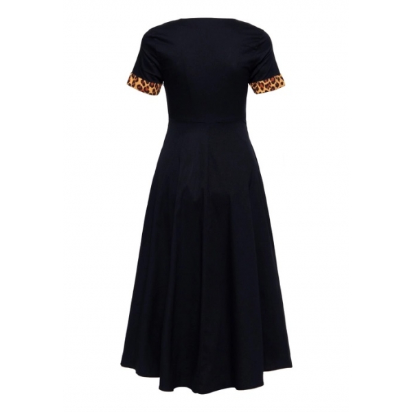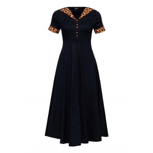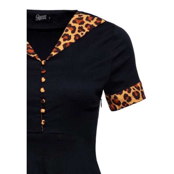 Robe swing noire Queen Kerosin au style rockabilly inspiré des années 50. Coupe flatteuse et allure féminine pour un look vintage affirmé.