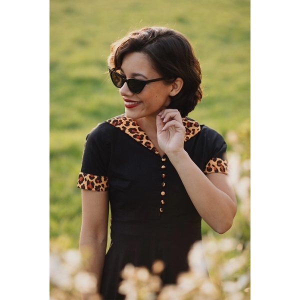 Cette robe swing noire signée Queen Kerosin ne se contente pas d’habiller une silhouette : elle capture l’esprit libre des années 50, entre élégance assumée et rébellion subtile. Inspirée des icônes rockabilly et des nuits rythmées par le rock’n’roll, elle évoque ces femmes audacieuses qui dansaient jusqu’à l’aube sans jamais compromettre leur style.