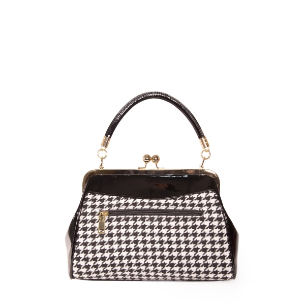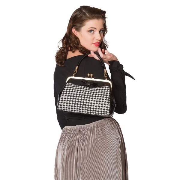 L'accessoire parfait pour accompagner toutes vos tenues rétro, le sac à main vintage motif pied de poule de chez Banned Apparel.