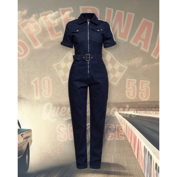 Inspirée des mécanos de circuits et du style pin-up garage, cette combinaison te propulse direct dans un univers rétro où attitude et style font la loi.