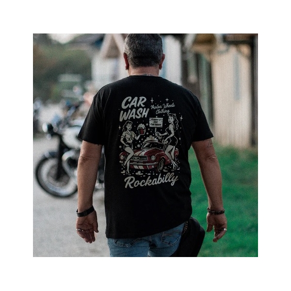 Ce t-shirt rétro américain n’est pas seulement un vêtement : c’est une déclaration de style pour tous ceux qui aiment la liberté, l’esthétique vintage et l’ambiance custom car wash des USA. Facile à associer avec un jean, une veste en cuir ou un bomber pour un look authentique et affirmé..